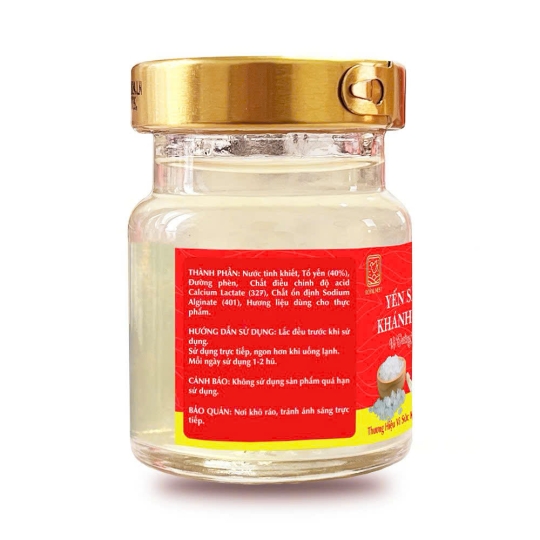 Thành Phần: Nước tinh khiết, Tổ Yến (40%), Đường phèn, Chất điều chỉnh độ acid Calcium Lactate (327), Chất ổn định Sodium Alginate (401), Hương liệu dùng cho thực phẩm.